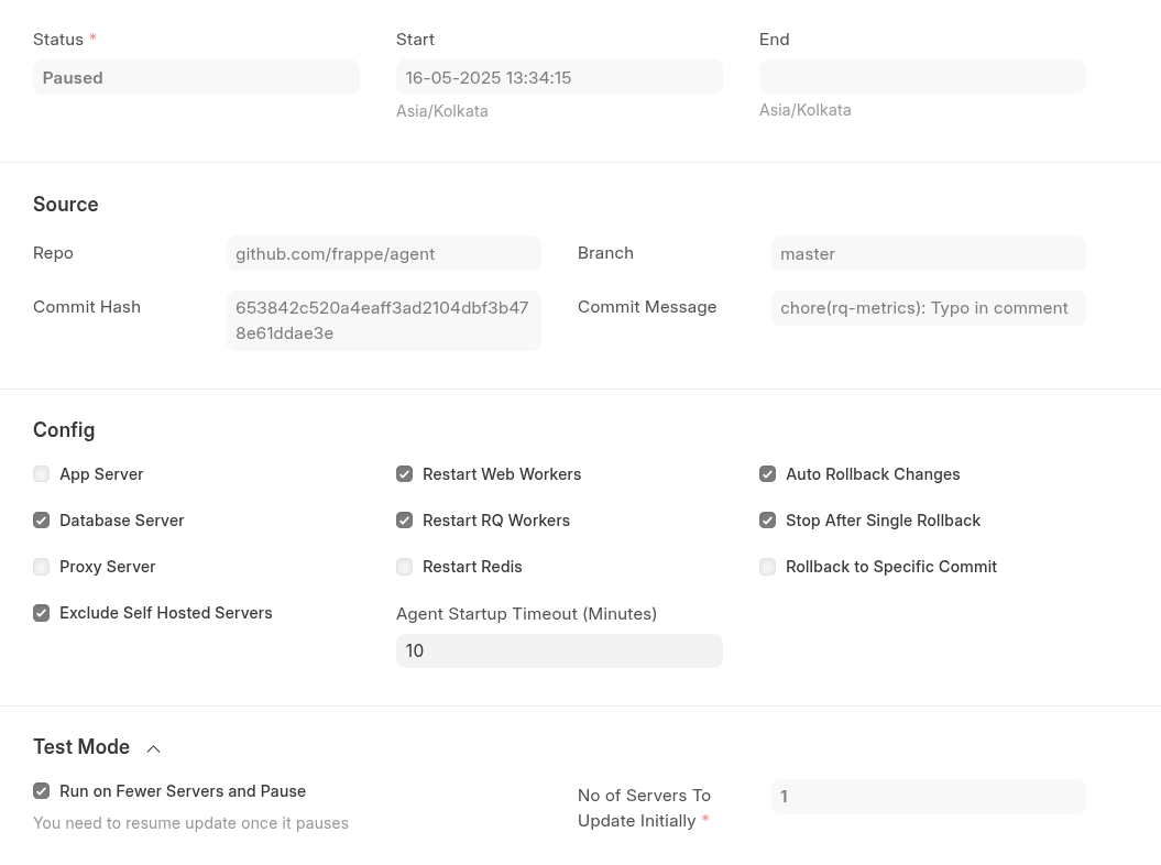 Rollback to Specific Commit, this you can use to rollback to specific commit on all agent update (Useful in Development Environment)