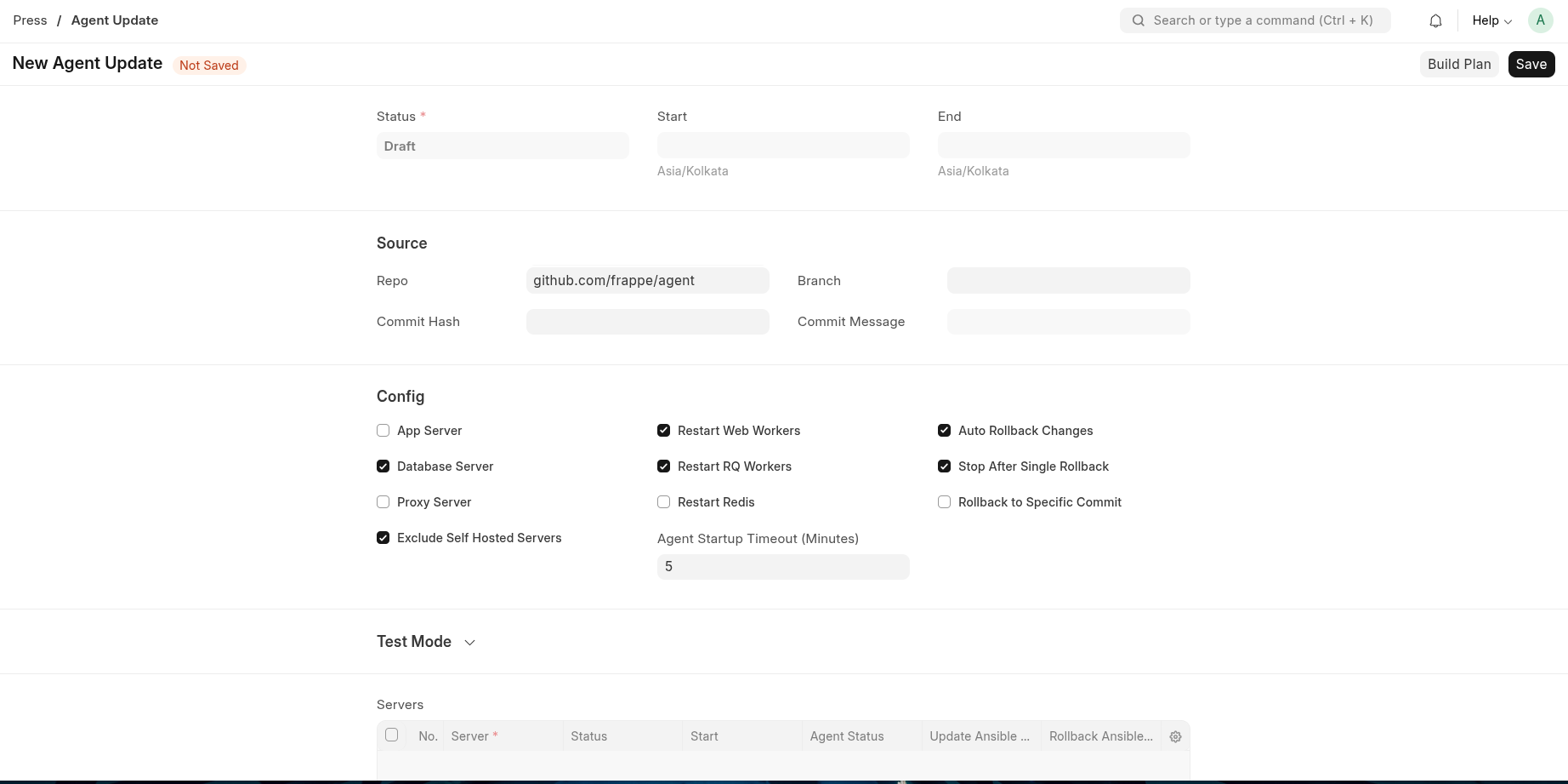 Build Planbutton. This process can take few minutes. During this will gather the current installed agent information and plan the whole update.- Once done, status will be changed to