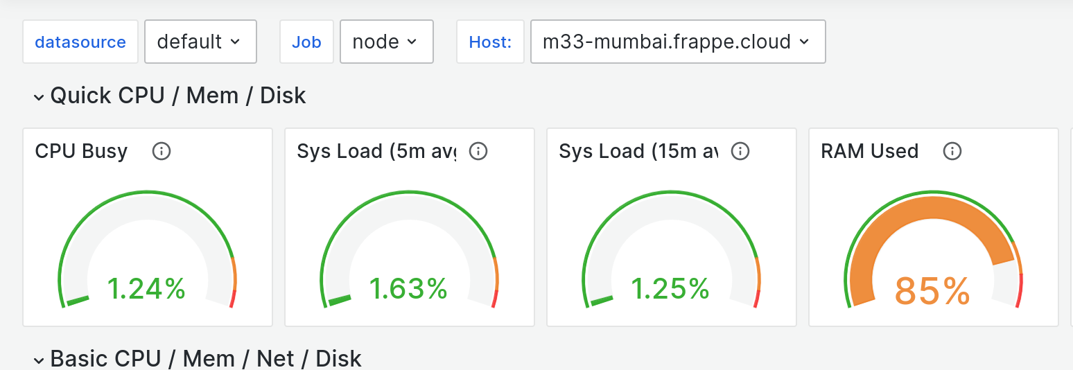 You can do this by checking the Node Exporter dashboard on monitor.frappe.cloud. The charts in Grafana are much more feature rich than the simple ones we provide on the Servers dashboard on FC.