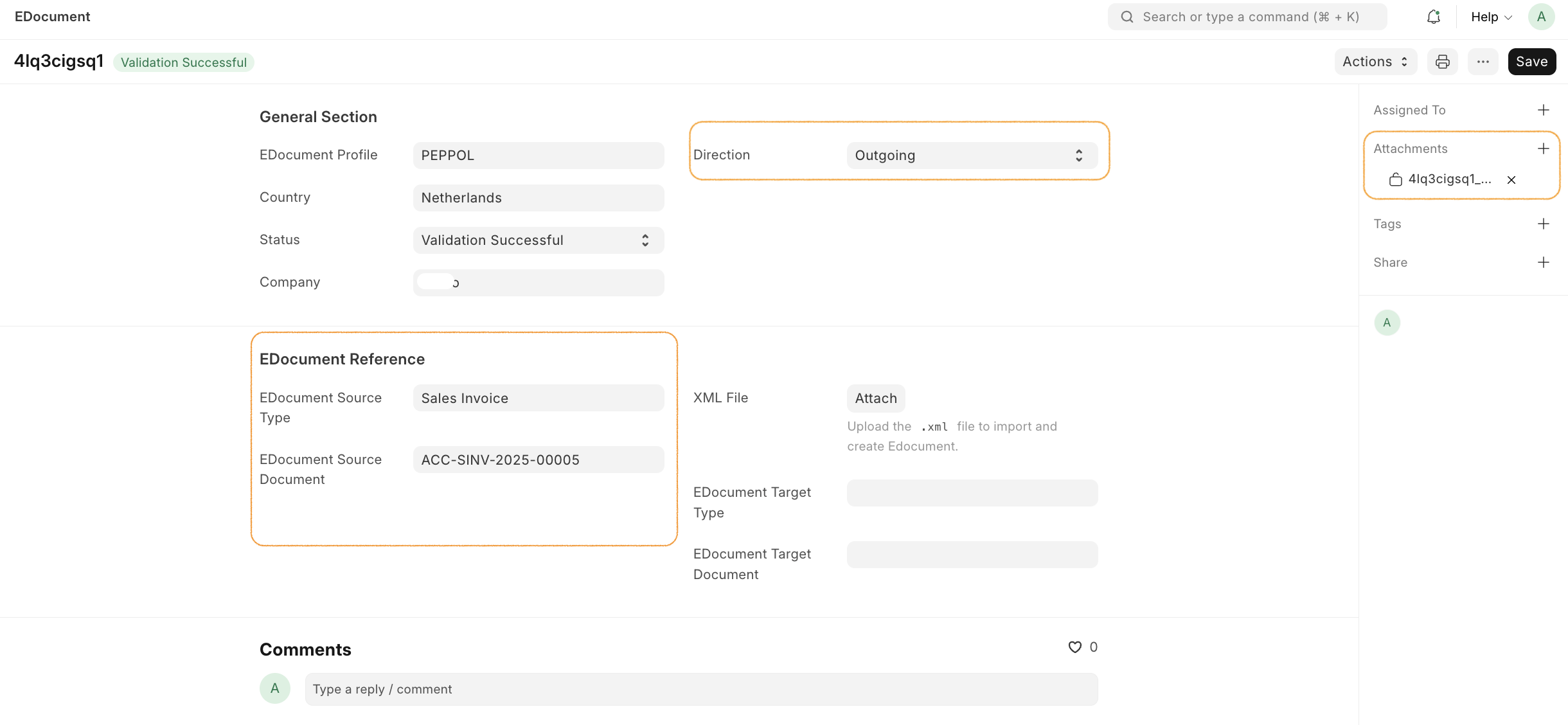 Click Generate XML - this will create the PEPPOL XML and attach it to the document
