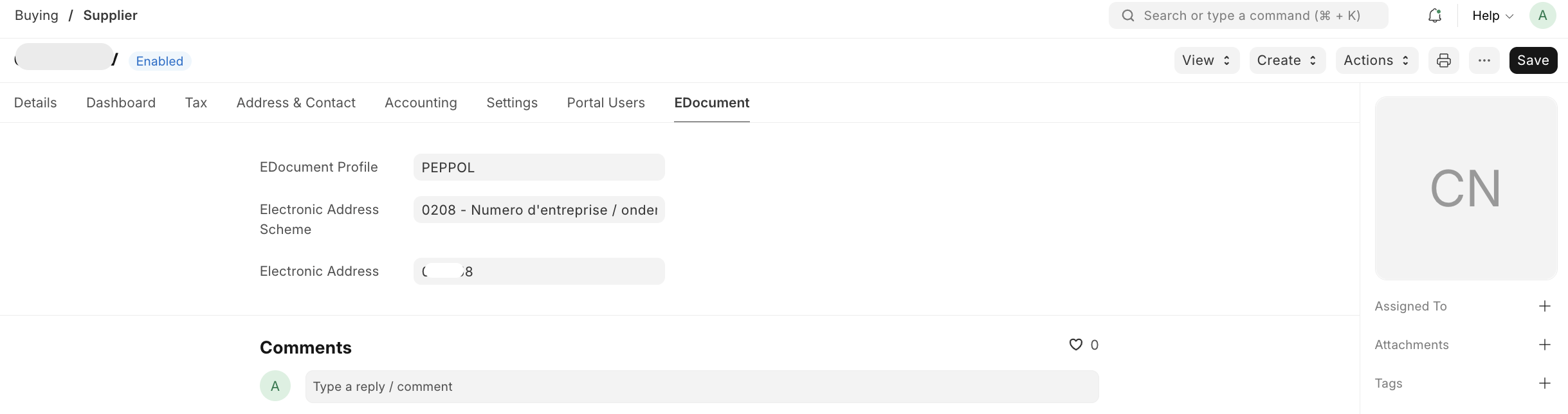Configure EDocument settings in the Supplier master data: - EDocument Profile: Default profile to use for this supplier - Electronic Address Scheme: Scheme for the supplier's electronic address - Electronic Address: The supplier's electronic address identifier