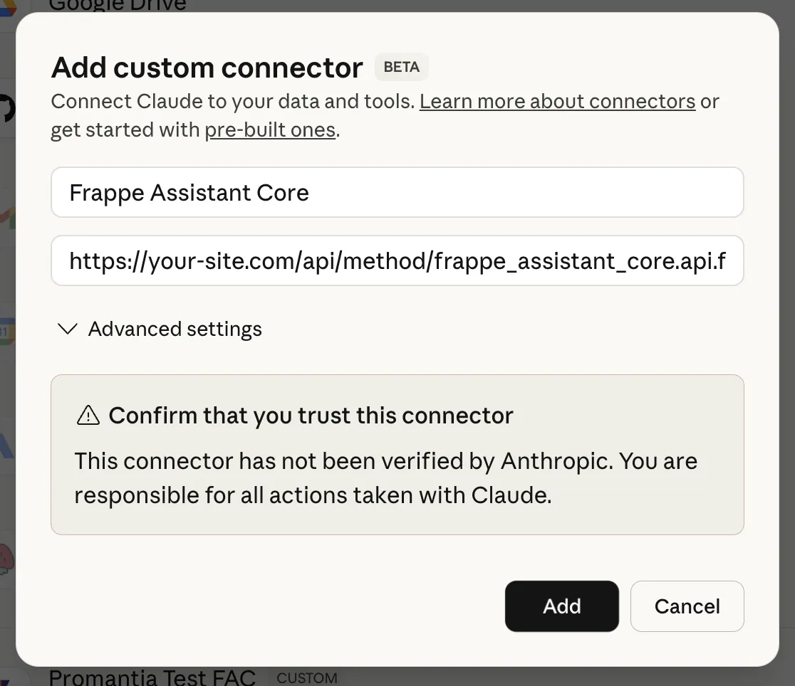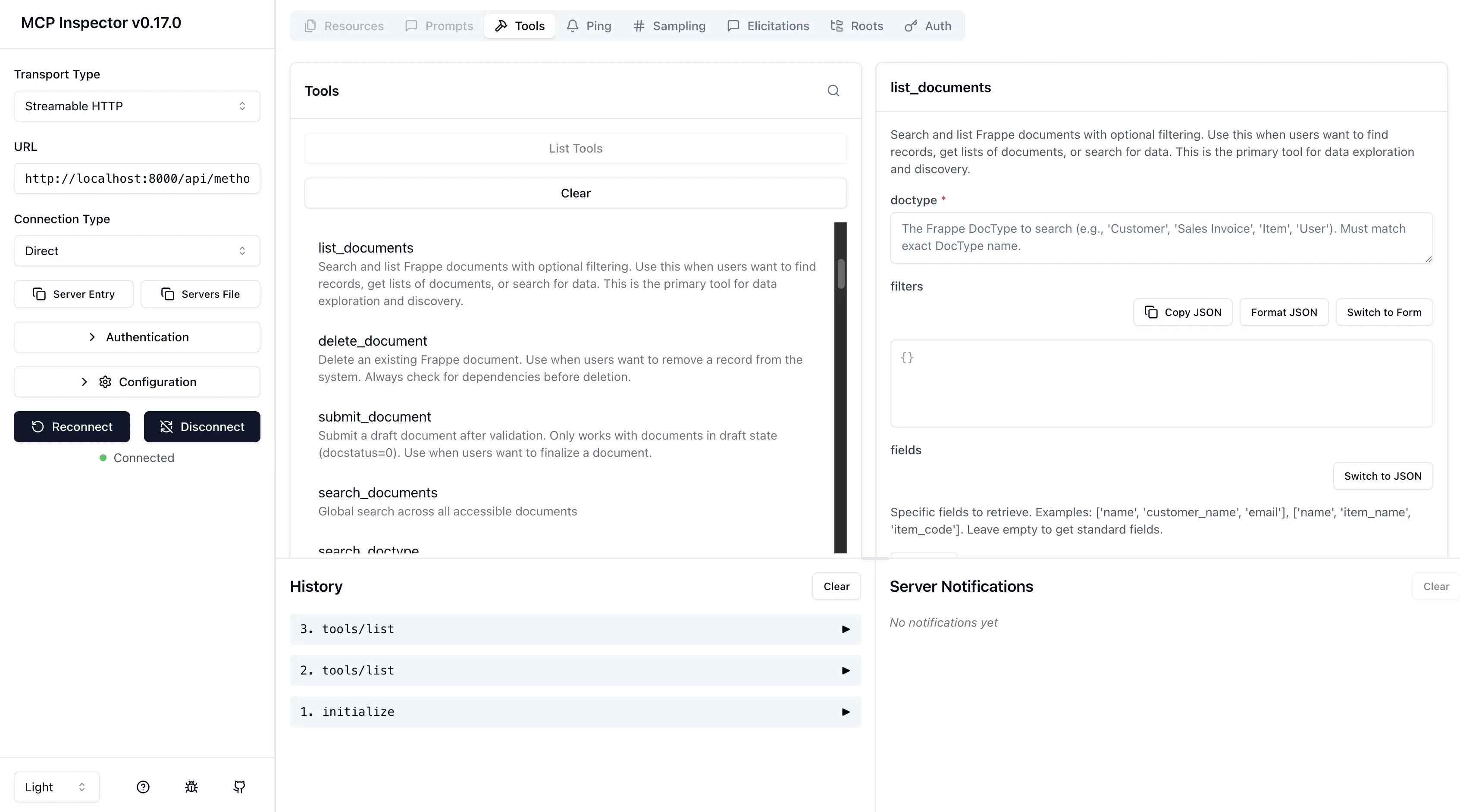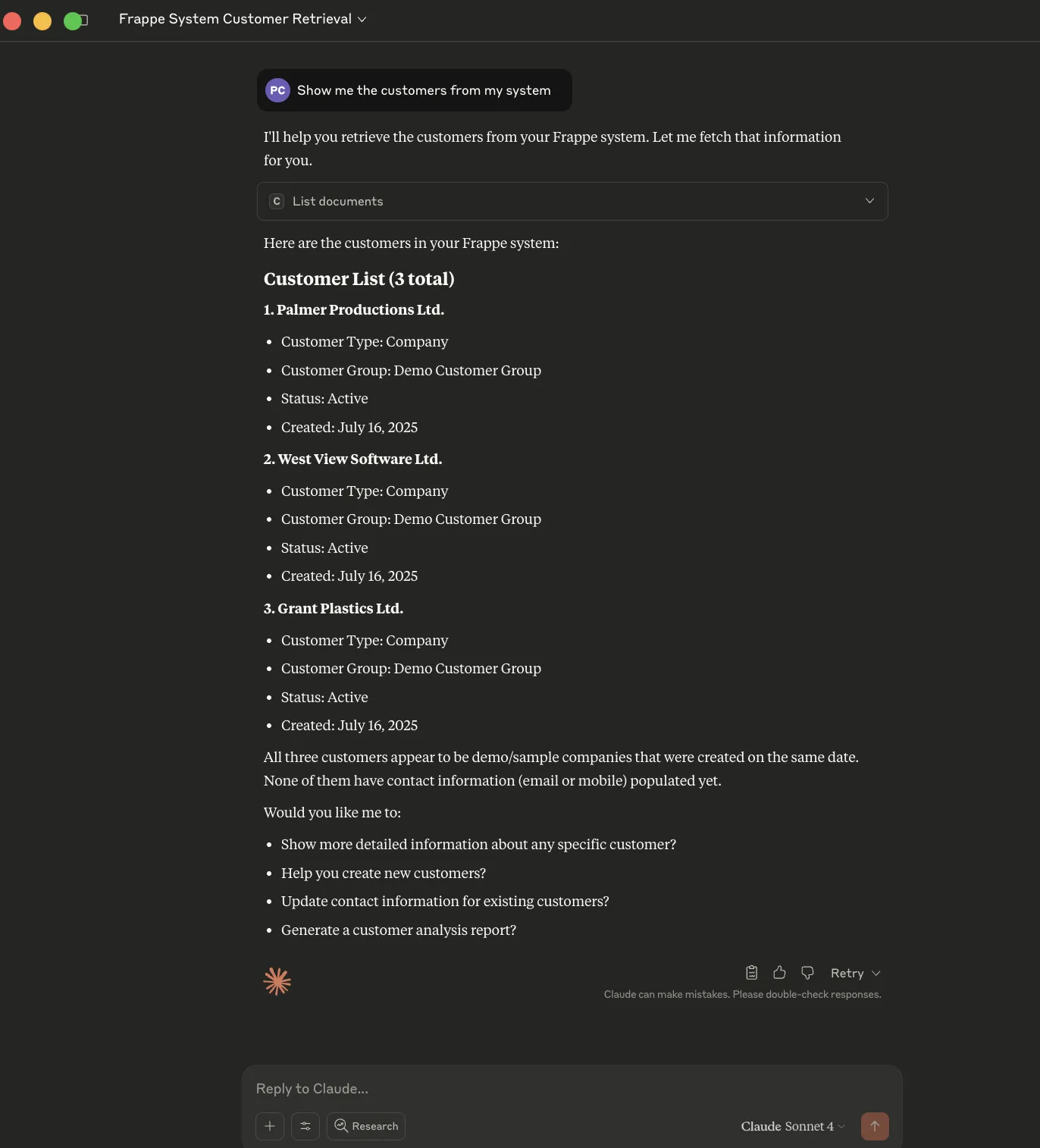 The LLM will interact directly with your ERPNext data through the MCP tools.