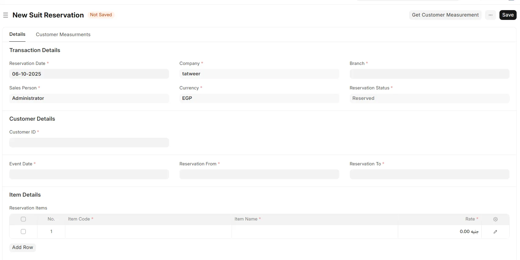 Customer Measurements – Store and reuse customer measurements for faster reservations.